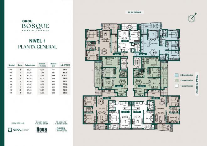 Respirar mejor para vivir mejor. Con un elevado compromiso con el entorno natural, GROU® presenta un moderno complejo de condominios dispuestos en un jardín residencial de 5100 m2, integrados a un diseño paisajístico que invita a adentrarse en el bosque del Parque Roosevelt. Un hogar ideal para vivir o invertir, en una ubicación estratégica y con la excelencia constructiva de un proyecto que ofrece categoría y confort. 114 apartamentos (de 1, 2 y 3 dormitorios) construídos con materiales de primera calidad y un cuidado detalle en sus terminaciones.