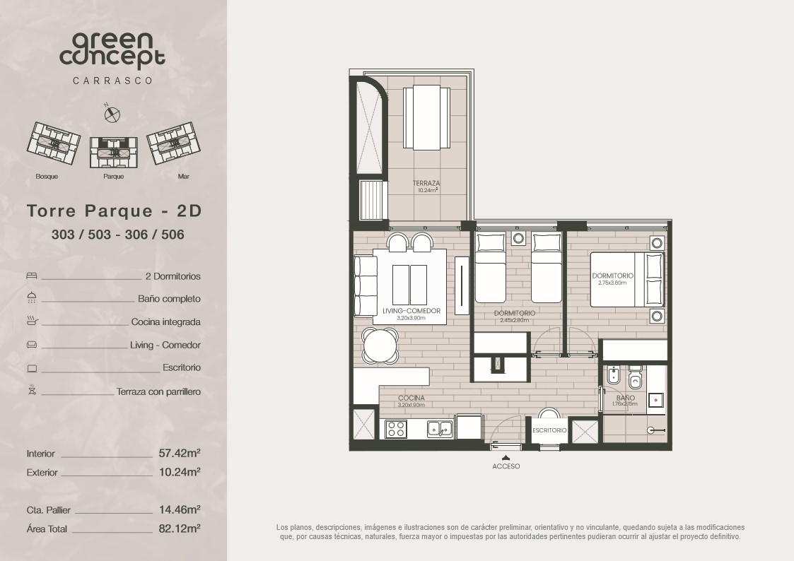 Lindante con un parque lineal y rodeado de un entorno cuidado se ubica Green Concept: Un desarrollo de 3 bloques de edificios bajos con entorno y centro verde. Se trata de una arquitectura contemporánea diseñada por RMA Arquitectos, que integra el entorno de manera respetuosa, incorporándolo en su interior. Unidades de 1, 2 y 3 dormitorios, unidos por un parque diseñado con todos los detalles, que lo convertirá en el lugar donde no veas la hora de volver todos los días. Apartamentos con vistas al parque, al bosque o al mar logrando una conexión única con el entorno, combinando un diseño moderno, con detalles de calidad y la naturaleza que lo rodea.